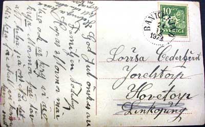 Regina och Dora verkade ha haft en nära kontakt med sin mamma/mormor. Lovisa måste varit mycket snäll. Här är ett julkort från Familjen Söderberg som Dora skrivit. Det är poststämplat den 24/12 – 1922. Dora var nu 19 år när hon skrev till sin mormor Lovisa från Tegneby Östergård.
