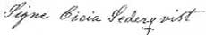 Louise Vidar berättade att hon och mamma Sonja ofta var hos Sonjas moster Signe och hälsade på på Djurgårdsgatan. Signe valde att ändra stavningen på sitt efternamn till Sederqvist istället för Cederqvist med C. Signe bodde i en lägenhet vid Busscentralen. Hon var gift med en mycket lång man som hette Axel Andersson, som även Signe skriver om i sitt brev. Han var väldigt lång han var 2 meter lång. Signe sa alltid ” ungarna åker kana på ryggen på han” så han var nog väldigt lång. Axel arbetade som murare och de hade en dotter som hette Greta.